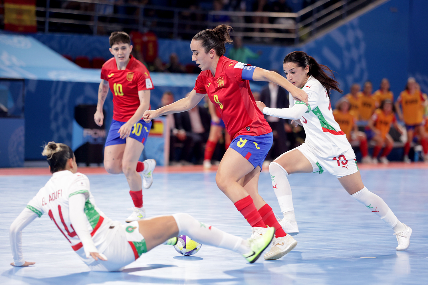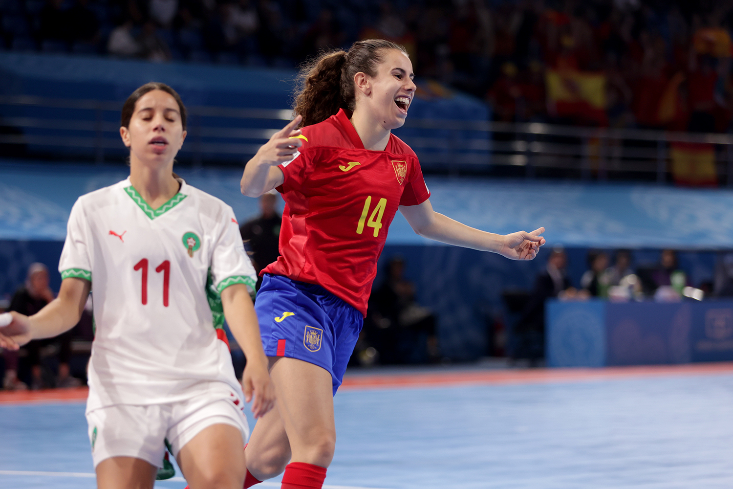 グループBを1位通過したスペインはグループAで2位のモロッコと対戦。すると、開始わずか14秒でイレーネ・コルドバがネットを揺らしてスペインが先制する。さらに、29秒で追加点を挙げると、1分26秒で3点目を奪い、コルドバは、わずか1分半足らずでハットトリックを達成した。