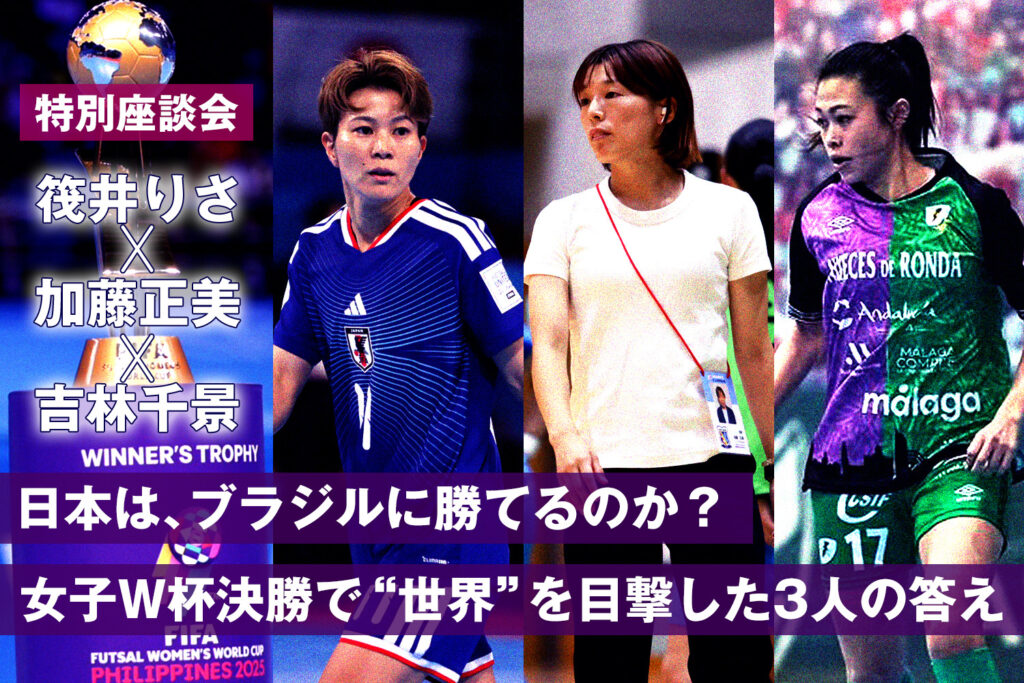 New Release 2026.02.02 【日本代表】“バルサでプレーした初の日本人”原田快がアジアカップでゴラッソ!相手GKを嘲笑… 2026.02.01 山中翔斗の2得点でウズベキスタンに逆転勝利!アジアカップ3連勝でグループステージを首位通過… 2026.01.31 【日本代表】主将・石田健太郎がアジアカップ期間中に負傷離脱。追加招集は行わず 2026.01.30 “因縁”のタジキスタン代表に3-0で勝利!グループステージ突破が決定!次戦は首位通過を懸け… 2026.01.29 「日本は、ブラジルに勝てるのか?」史上初の女子W杯決勝、現地で“世界”を目撃した3人の答え… 2026.01.28 アジアカップ初戦でオーストラリアに代表に6-2で逆転勝利!2大会ぶり5度目の優勝に向けて白… 2026.01.29 第22回全日本女子フットサル選手権大会の組み合わせが決定!女王を決する戦いが北海道で開催 2026.01.27 【インタビュー】フットサル競技生活25年、中島詩織が最後に夢見たW杯出場。初代日本女子代表… AD 【全話連載中】日本フットサルの黎明期から続く歴史と物語|フットサル三国志 FEATURE 2025.12.20 【大会・試合情報】LUXPERIOR CUP 地域大学フットサルチャンピオンズリーグ|試合… 2025.12.20 【大会・試合情報】全日本U-15女子フットサル選手権大会|試合日程・結果・順位表|試合会場 2025.12.20 【大会・試合情報】全日本U-15フットサル選手権大会|試合日程・結果・順位表|試合会場 2024.03.28 【日本代表】AFC フットサルアジアカップ インドネシア 2026 完全ガイド|試合日程・… 2025.12.14 【スポーツデポカップ フットサルフェスタ2025】国内最大級フットサル大会の全国大会が神戸… 2025.05.06 【女子日本代表情報】フットサル日本女子代表 試合日程・結果【FIFAフットサル女子ワールド… WATCH フットサル観戦をもっと楽しもう! READ MORE 2026.02.02 【日本代表】“バルサでプレーした初の日本人”原田快がアジアカップでゴラッソ!相手GKを嘲笑… 【日本代表】“バルサでプレーした初の日本人”原田快がアジアカ… 2026.02.01 山中翔斗の2得点でウズベキスタンに逆転勝利!アジアカップ3連勝でグループステージを首位通過… 山中翔斗の2得点でウズベキスタンに逆転勝利!アジアカップ3連… 2026.01.31 【日本代表】主将・石田健太郎がアジアカップ期間中に負傷離脱。追加招集は行わず 【日本代表】主将・石田健太郎がアジアカップ期間中に負傷離脱。… 2026.01.30 “因縁”のタジキスタン代表に3-0で勝利!グループステージ突破が決定!次戦は首位通過を懸け… “因縁”のタジキスタン代表に3-0で勝利!グループステージ突… 2026.01.29 「日本は、ブラジルに勝てるのか?」史上初の女子W杯決勝、現地で“世界”を目撃した3人の答え… 「日本は、ブラジルに勝てるのか?」史上初の女子W杯決勝、現地… AD 【全話連載中】日本フットサルの黎明期から続く歴史と物語|フットサル三国志 【全話連載中】日本フットサルの黎明期から続く歴史と物語|フットサル三国志 PLAY ボールを蹴りたい、うまくなりたい! READ MORE 2025.12.14 【スポーツデポカップ フットサルフェスタ2025】国内最大級フットサル大会の全国大会が神戸… 【スポーツデポカップ フットサルフェスタ2025】国内最大級… 2025.08.21 10月5日、「フットサルガールズフェスタ in わこなりファミリーフェスタ」を開催!女子F… 10月5日、「フットサルガールズフェスタ in わこなりファ… 2025.05.30 【SALフェス】6年ぶり3回目、熱狂のSALフェス!立川アスレと楽しむフットサルの1日を完… 【SALフェス】6年ぶり3回目、熱狂のSALフェス!立川アス… 2025.04.11 5月25日、フットサルの祭典「SALフェス2025 in ノア・フットサルステージ和光成増… 5月25日、フットサルの祭典「SALフェス2025 in ノ… 2025.08.20 【スポーツデポカップ フットサルフェスタ2025】「みんなが、主役!!」国内最大級フットサ… 【スポーツデポカップ フットサルフェスタ2025】「みんなが… AD 【全話連載中】日本フットサルの黎明期から続く歴史と物語|フットサル三国志 【全話連載中】日本フットサルの黎明期から続く歴史と物語|フットサル三国志 WEAR ファッションの最新ニュースはこちら! READ MORE 2025.06.10 LUZeSOMBRAが創業20周年記念企画を発表。過去作をアップデートした特別商品をリリー… LUZeSOMBRAが創業20周年記念企画を発表。過去作をア… 2025.05.30 【F1ユニフォーム紹介】バサジィ大分、鮮烈オレンジで新シーズンへ 【F1ユニフォーム紹介】バサジィ大分、鮮烈オレンジで新シーズ… 2025.05.30 【F1ユニフォーム紹介】ボルクバレット北九州、“火花”に込めた誇りで熱烈なサポーターと戦う 【F1ユニフォーム紹介】ボルクバレット北九州、“火花”に込め… 2025.05.30 【F1ユニフォーム紹介】シュライカー大阪、ドットをあしらったグラフィックが特徴の新ユニフォ… 【F1ユニフォーム紹介】シュライカー大阪、ドットをあしらった… 2025.05.30 【F1ユニフォーム紹介】名古屋オーシャンズ、赤きプライドで王座奪還へ 【F1ユニフォーム紹介】名古屋オーシャンズ、赤きプライドで王… AD 【全話連載中】日本フットサルの黎明期から続く歴