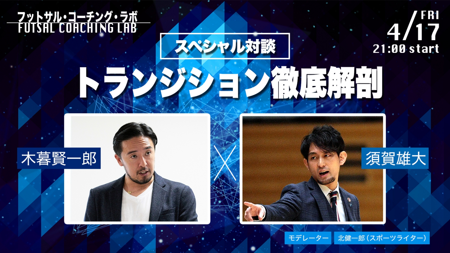 4月17日(金)、フットサル指導者の木暮賢一郎氏とフウガドールすみだの須賀雄大監督によるオンライン対談が実現。その模様は木暮氏が主宰するオンラインサロン「フットサル・コーチング・ラボ」の公式YouTubeチャンネルにて無料でライブ配信され、番組終了後の現在もアーカイブで視聴できる。