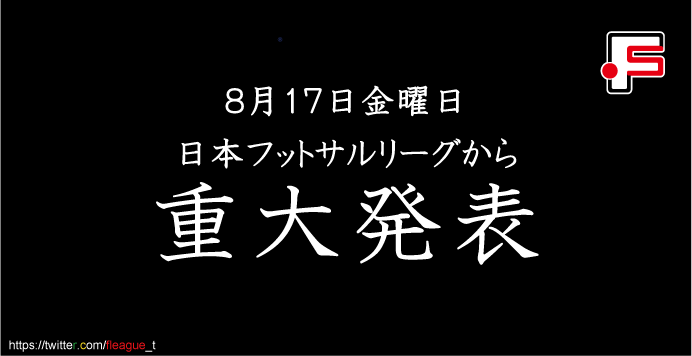 Twitterアカウントでは画像で「8月17日金曜日日本フットサルリーグから重大発表」をお知らせしている。