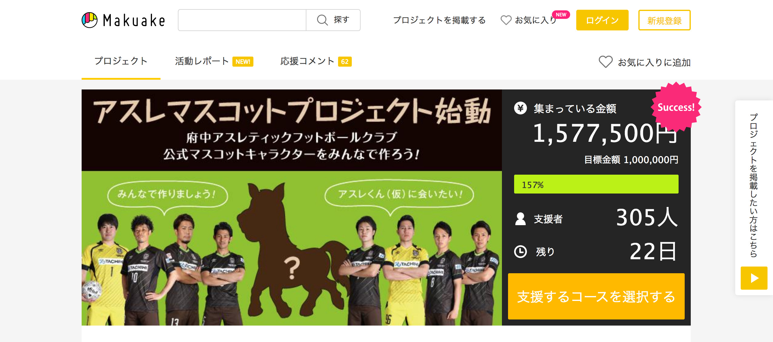 7日23時時点でこのプロジェクトは305名の方に支援してもらい、157万7500円の資金調達に成功している。これを受けて立川・府中は、リターンとして「プリメイラとサテライトの選手とゲーム会」、「プリメイラ全選手のサイン入りレプリカユニフォーム」を追加し、さらなる資金調達を目指す。