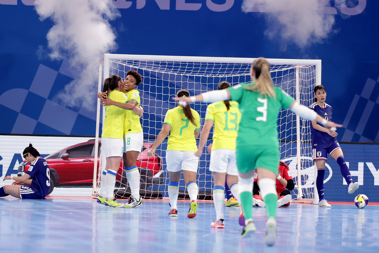 グループDを1位通過したブラジルはグループCで2位の日本と対戦。序盤からピヴォを中心としたシステムで圧倒すると、4分の先制点を皮切りに、第1ピリオドだけで5点をリード。日本は残り10分からパワープレーを始めるもなかなかゴールを奪えず、反撃は36分に中村みづきのシュートがオウンゴールを誘った1点のみ。最終スコア6-1で試合はタイムアップを迎え、優勝候補筆頭のブラジルが盤石の戦いぶりを示した。