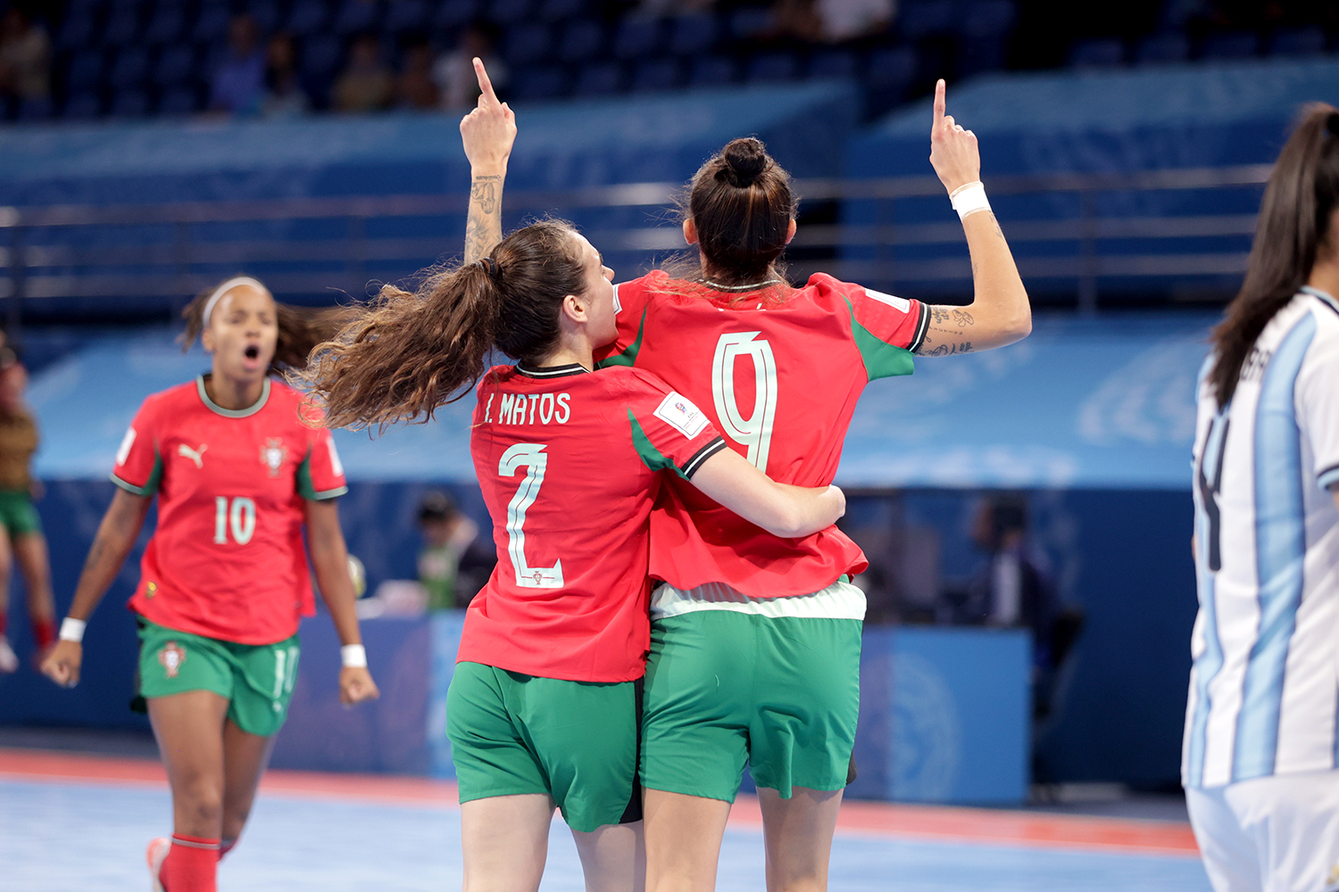 準々決勝の第1試合はアルゼンチンvsポルトガル。準々決勝でコロンビアを4-1で破ったアルゼンチンと、同じく準々決勝でイタリアを7-2で破ったポルトガルの一戦は、試合序盤から動いた。立ち上がり1分、ポルトガルがリディア・モレイラのゴールで先制すると、その後、7分、9分に追加点を挙げ、10分にも2ゴール。開始10分で5-0と勝負を決定づけると、さらに15分にもキャプテン、アナ・アゼベドが決めて6-0で試合を折り返した。