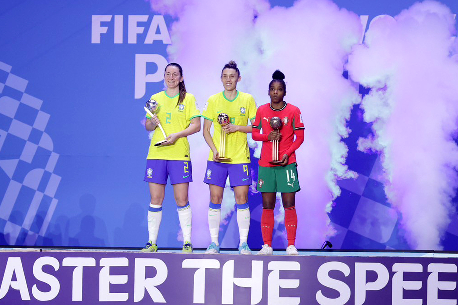 試合後には表彰式が行われ、大会最優秀選手は、得点王とダブル受賞となったブラジルのエミリーが受賞。準々決勝の日本戦でハットトリックを記録し、決勝でも先制点を挙げたセレソンのストライカーが選ばれた。