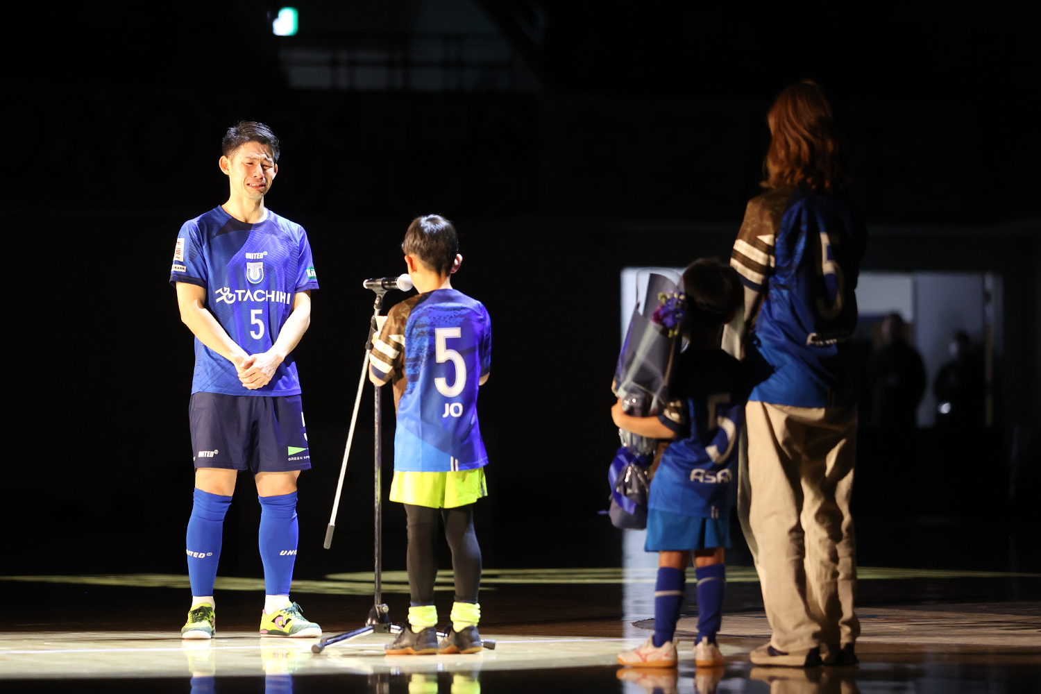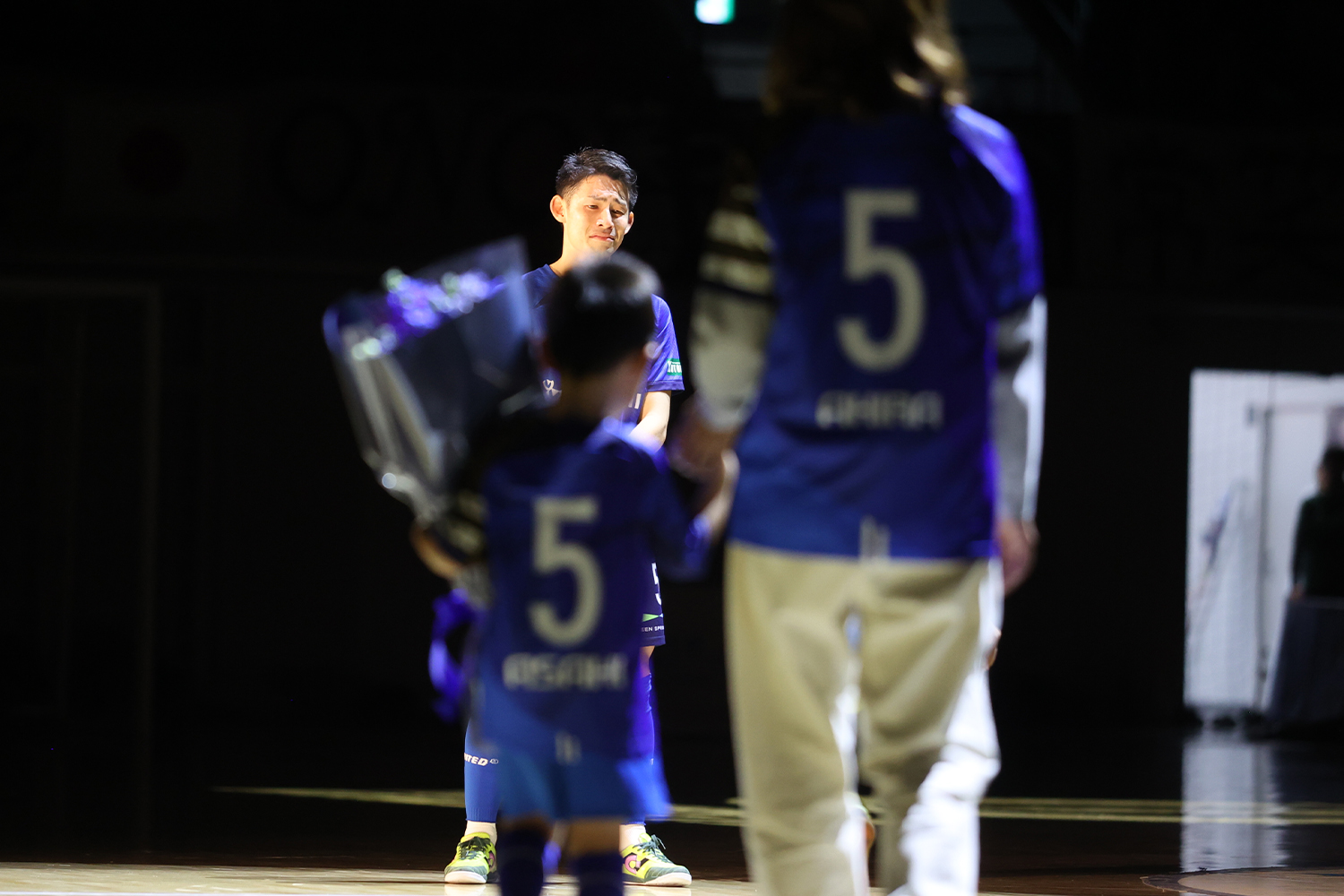 そして私はこの後、選手を引退して、社長としてこのクラブをもっともっと前に進めていきます。必ずFリーグでも一番のクラブにする。そして立川と、立川を中心に、この多摩地域のみなさんにとって、「立川にはアスレというフットサルクラブがある」という誇りをもってもらえるようなクラブを、これからみなさんと一緒につくっていきたいなと思っています。それが私の次のチャレンジになります。