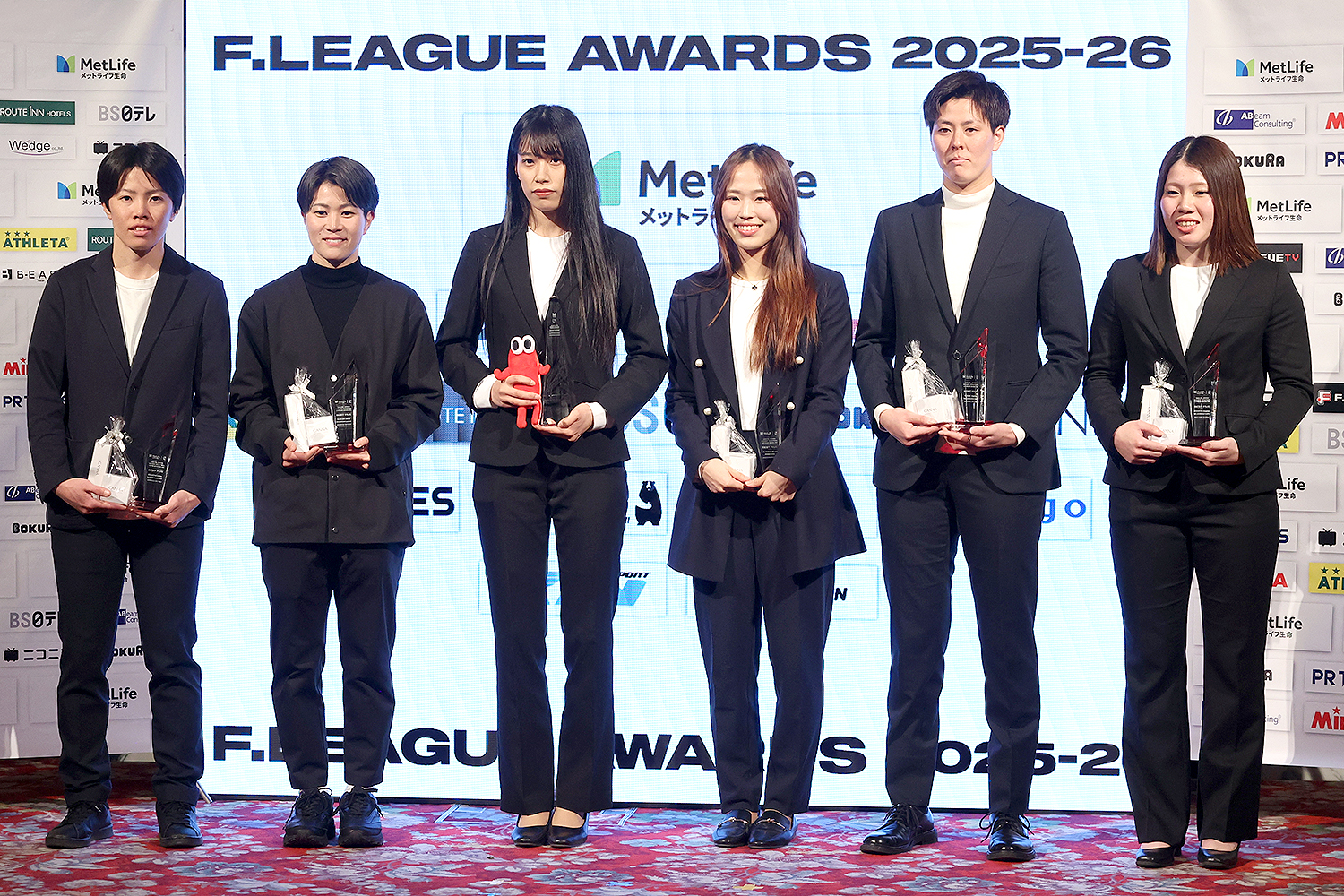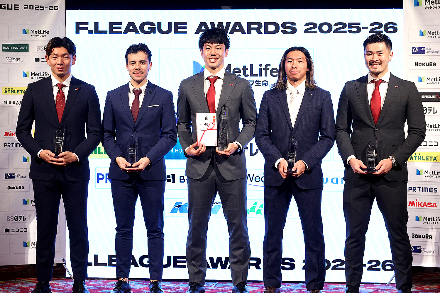 3月5日、ザ・プリンス パークタワー東京で「F.LEAGUE AWARDS 2025-26」が開催。メットライフ生命Fリーグ 2025-26、およびメットライフ生命女子Fリーグ 2025-26の表彰式が行われ、最優秀選手賞やベスト5、得点王など各受賞者が表彰された。