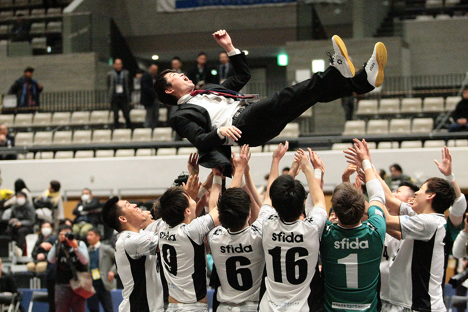 試合後は、まるで優勝を決めたかのような歓喜の輪が生まれ、ピッチ上では選手全員で高橋優介監督を胴上げ。全日本フットサル選手権への出場がないため、彼らはこれでシーズン終了。多くのフットサルファンの心に残る戦いを披露するとともに、最終戦を有終の美で飾った。